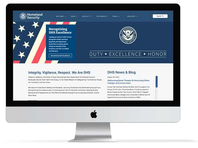 The Department of Homeland Security, DHS, has a clear mission of providing defense to America on all many faceted fronts. They are composed of many mission specific entities, focusing in areas such as border security, citizenship, immigration and natural disasters. Their website is frequented by various types of users including contractors, immigrants and civilians every day.